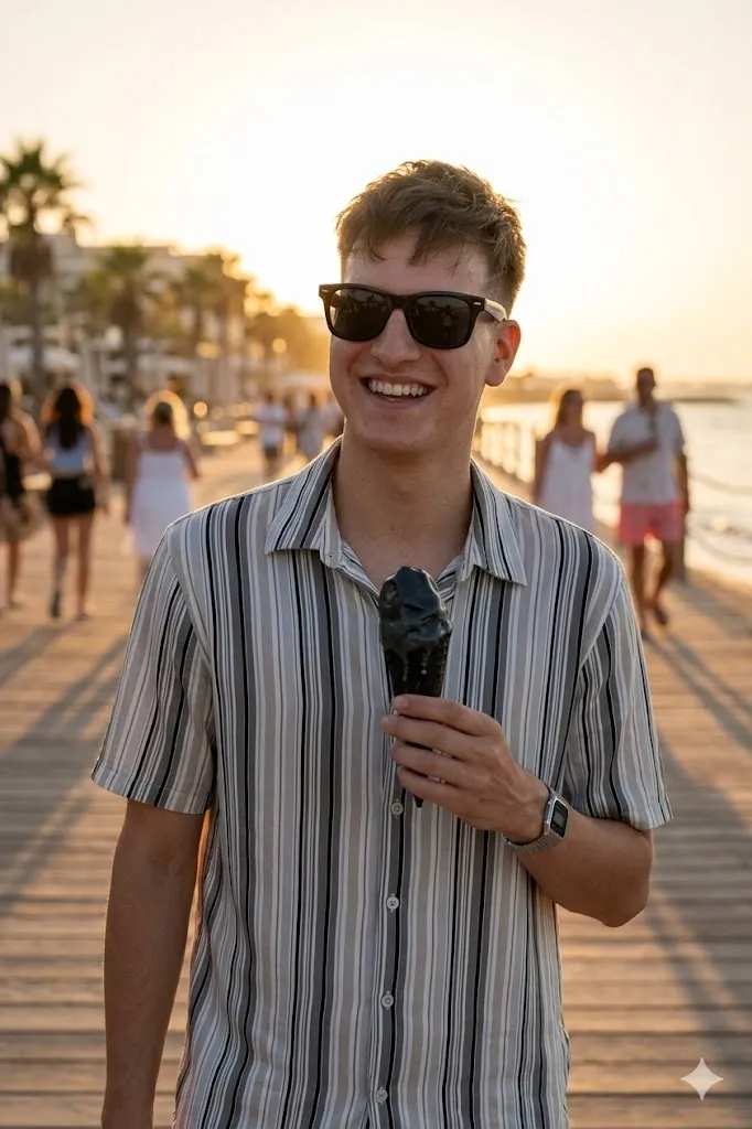 A boy, a girl, or even a kid photo can be edited with these prompts. The AI keeps the real face the same while changing the clothes, pose, and background to create a perfect summer Instagram look.